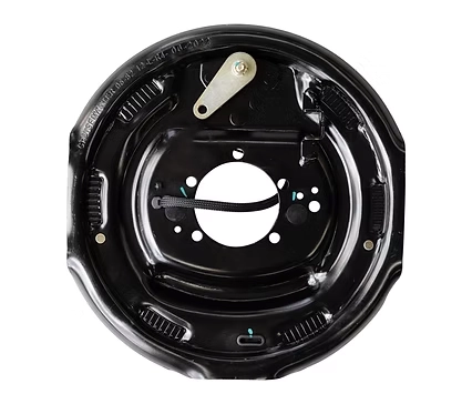 Durable 12″ all-terrain electric brake backing plate designed for reliable braking performance in harsh Australian conditions.