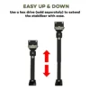 The leg transitions smoothly from its horizontal travel position to multiple angled or vertical positions within seconds. Only a minimal amount of winding is required to achieve the perfect leveling position. Its heavy-duty steel body with a black powder-coated finish ensures long-lasting resistance against rust, corrosion, and surface damage.